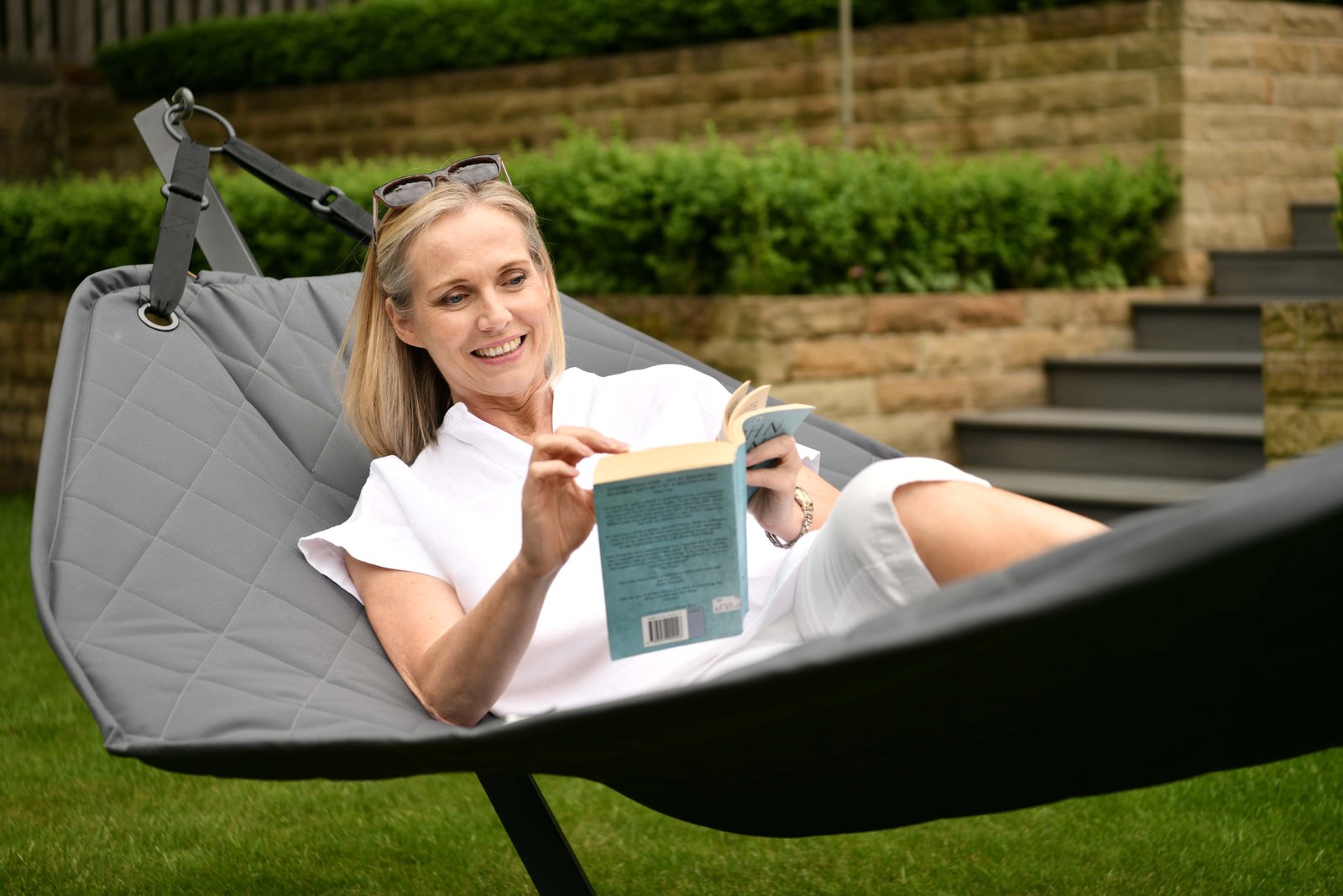الأرجوحة مزودة بدعامة من الفولاذ على شكل أنابيب خفيفة ومتينة للغاية.