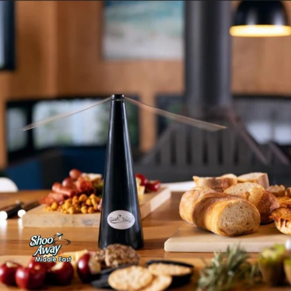 • Fly fan table is equipped with gentle and secure propeller blades, ensuring easy access to your food while it’s in operation. Simply interrupt the blades with your hand, and they will restart once you remove your hand. The device also boasts unique holographic repel dots reflective dots that create movements detested by flies. Powered by two AA batteries, ShooAway ensures extended use with a straightforward and long life operation. Importantly, ShooAway is completely free of chemicals, and its effectiveness is guaranteed.