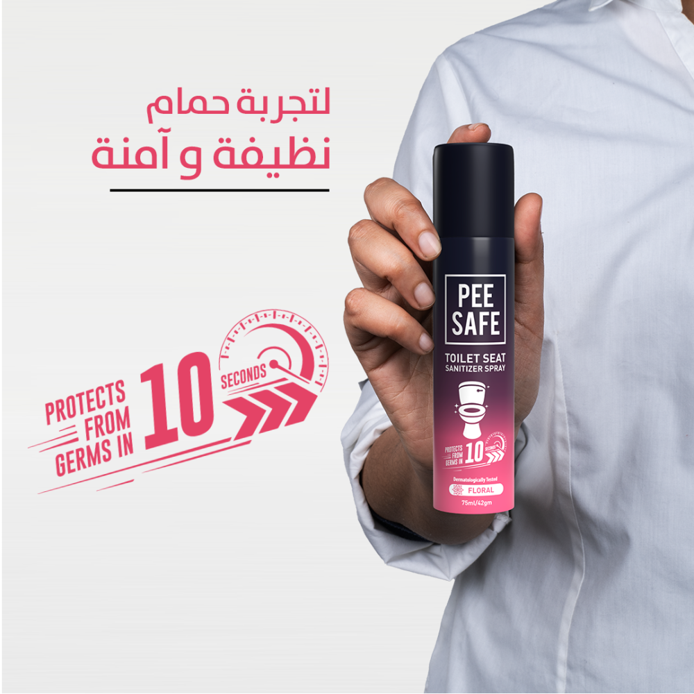 -لا داعي للقلق أو الخوف بعد اليوم من الحمامات العامة، معقم كرسي المرحاض من بي سيف يحميك من الجراثيم والبكتيريا ويقلل من خطر الإصابة بالأمراض والعدوى مثل التهاب المسالك البولية. يقتل الرذاذ 99.9% من الجراثيم الموجودة على سطح كرسي المرحاض.