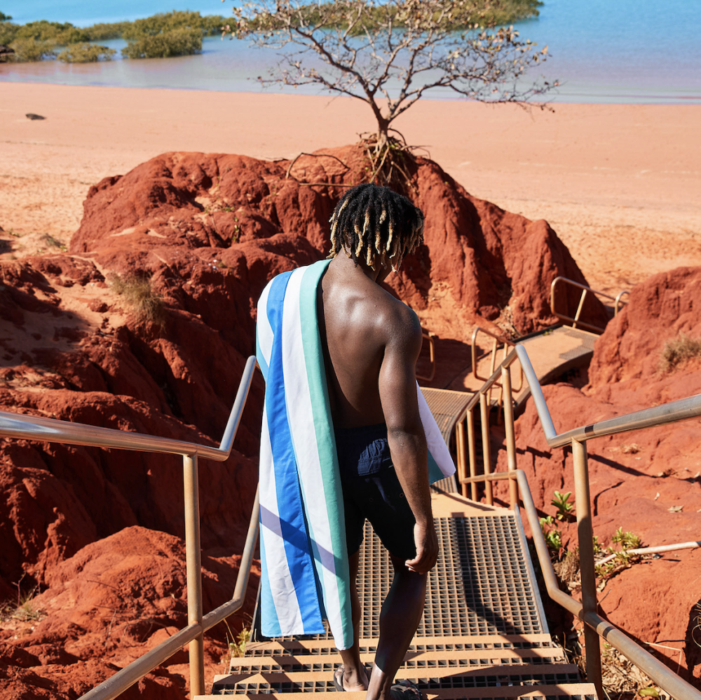 - فوطة سباحة صديقة للبيئة – تم تصنيعها بالكامل من قوارير البلاستيك المعاد تدويره.