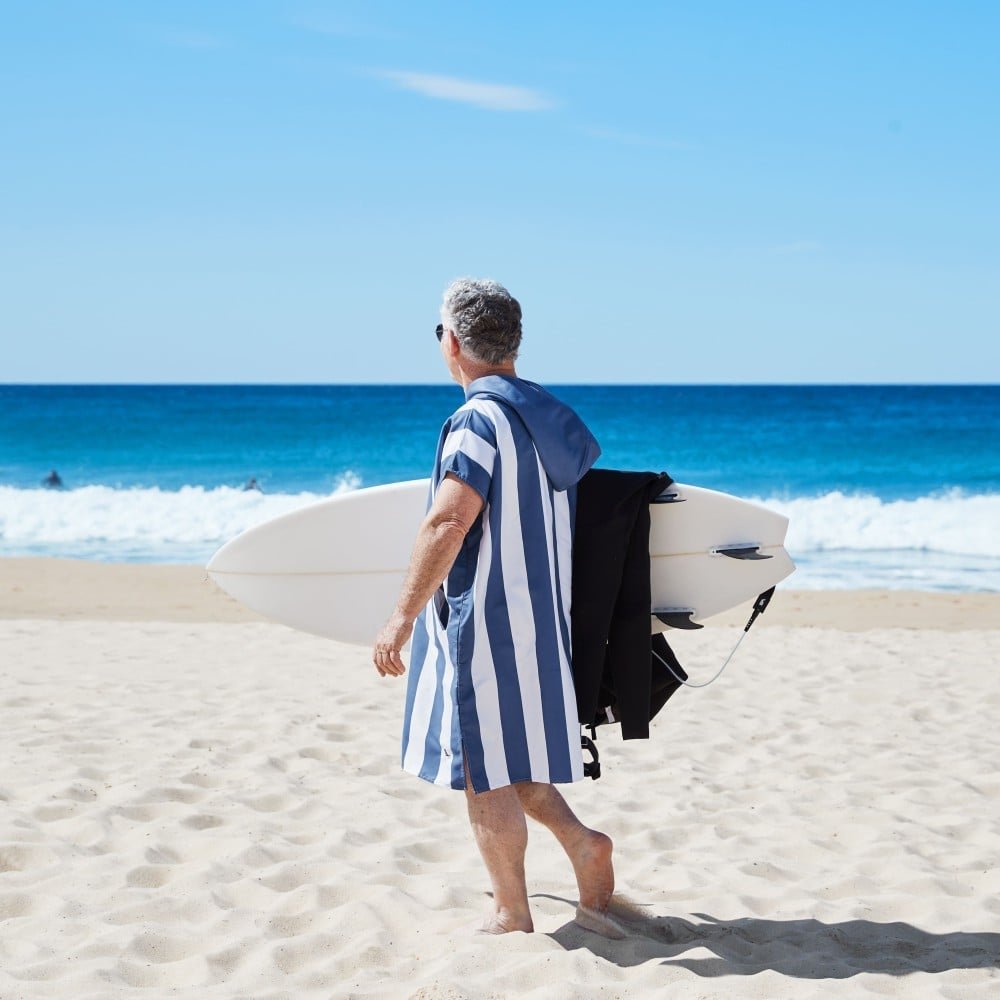 منشفة بونشو – أزرق غامق مخطط – مقاس كبير